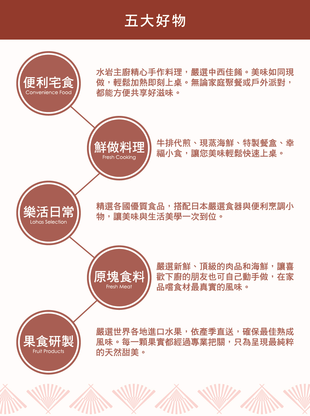 歷經兩年的努力,我們遇見並攜手理念相同的「水岩真料理」團隊,共同打造「森菓宅食」。我們嚴選自然食材,堅持手工烹調,保留原有的純粹與鮮美。希望讓無論在家中或戶外的你,都能以最便利的方式,享受到用心製作的佳餚。